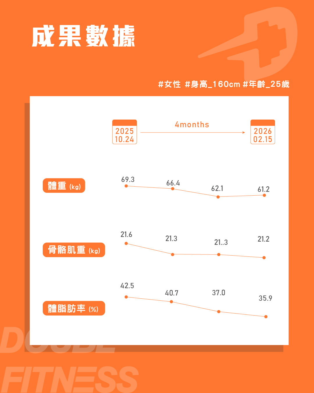 • 體脂率 -3.6%